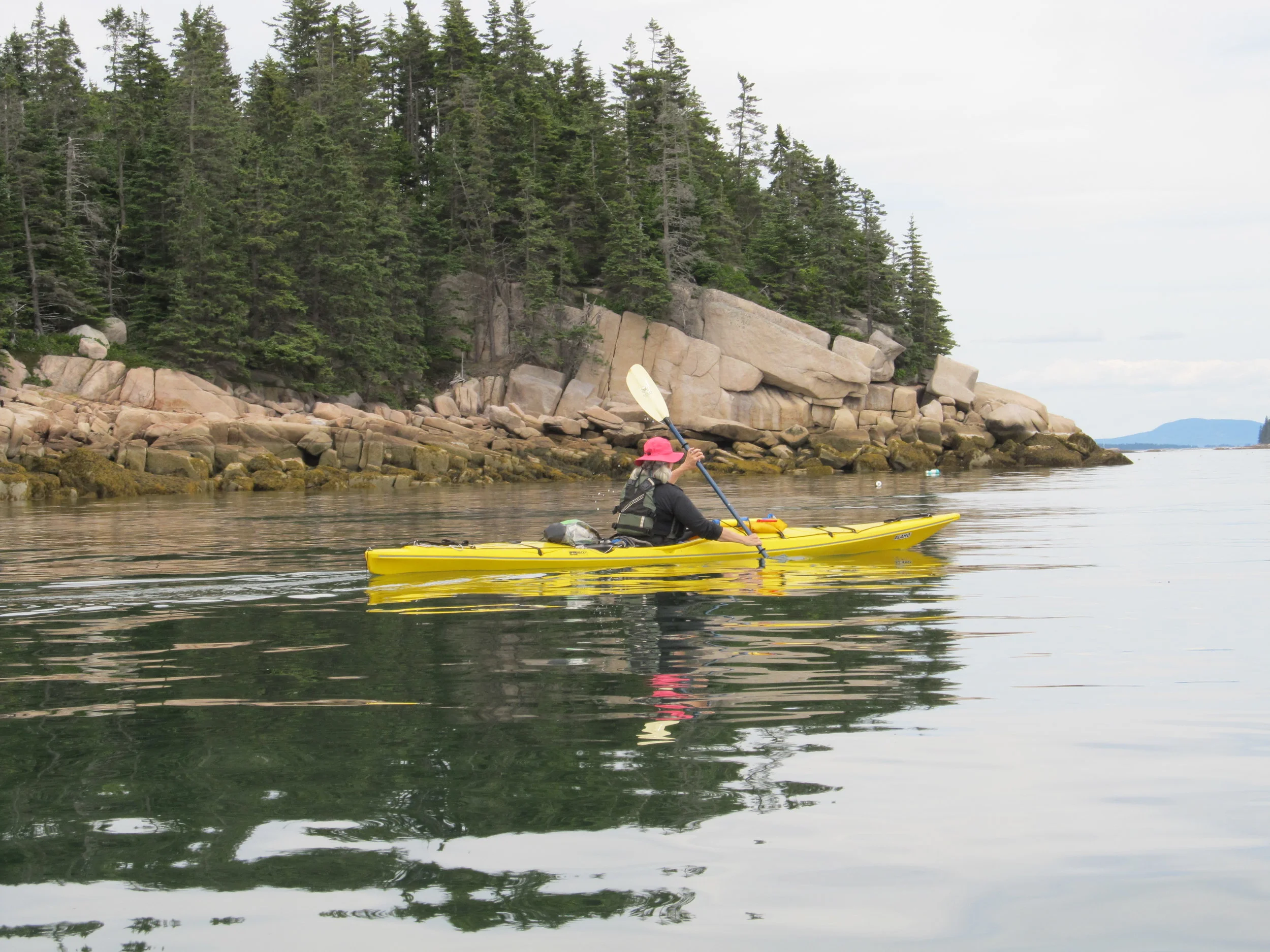 The sea was so calm. We were able to cover much more ground and circle islands that usually have spots that can be a bit treacherous with some wind and waves. With every soft paddle-stroke, my body relaxed. The briny air and the smell of the rosa rugosa growing on the edges between spruce and pine trees and the granite rocks was intoxicating. I kept inhaling deeply, trying to lock in the memory of it.