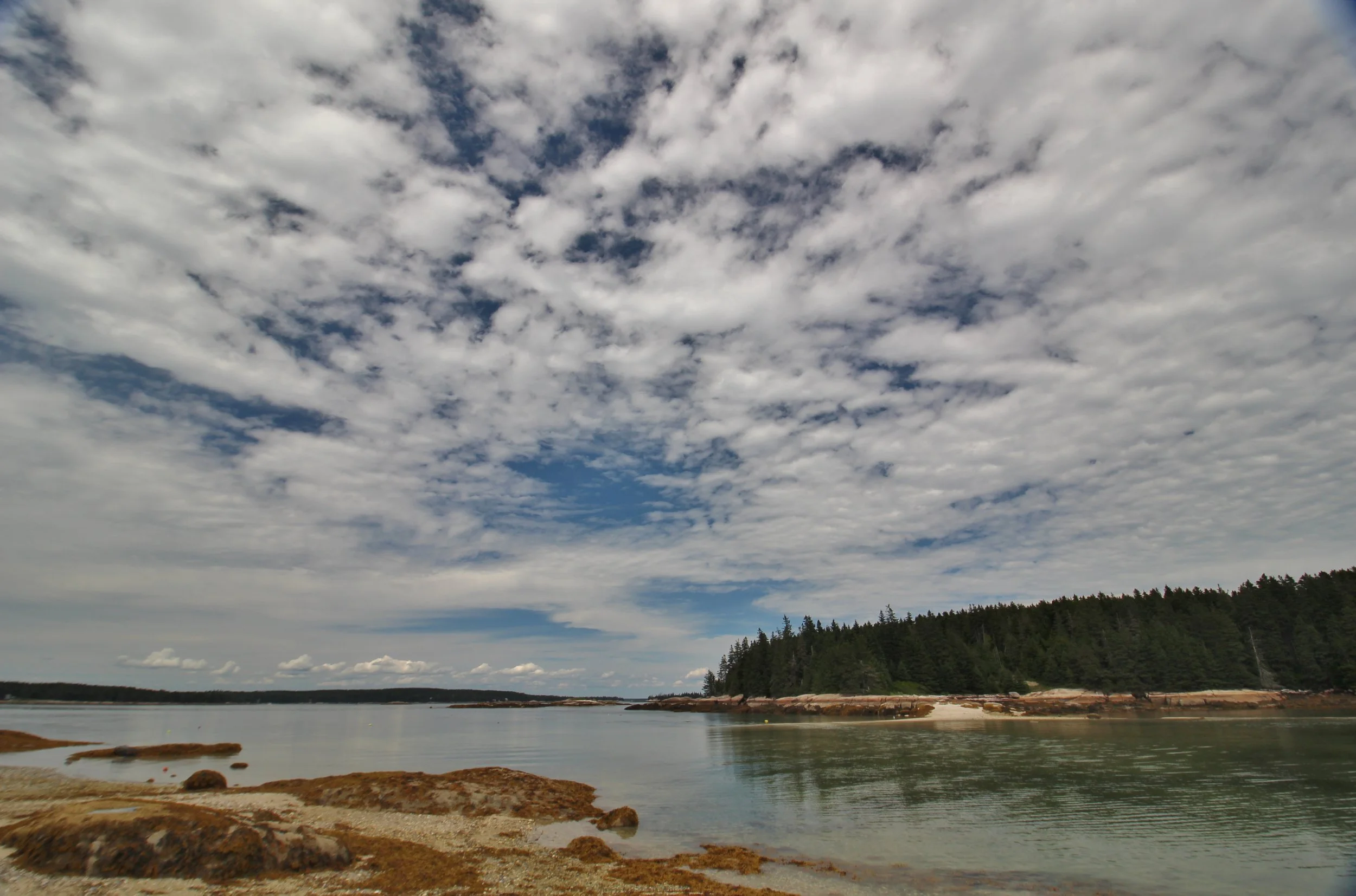 My Maineiac mind has been a bit roiled, of late. The political landscape is unsettling, our state's Governor just will not act civilly, and work has been busy this summer. The latter is unusual, as I tend to see fewer clients this season. Anyhow, we realized that a good chunk of the summer has gone by, and we have not made it to our favorite kayaking spot off of Deer Isle/Stonington. The weekend was going to be cloudy, but we decided to make a go for it. I was worried that my pics wouldn't come out well with these skies. Boy, was I wrong. Between the carpet of clouds and my new wide-angle lens, the sky in these pictures is stunning. Don't you agree?