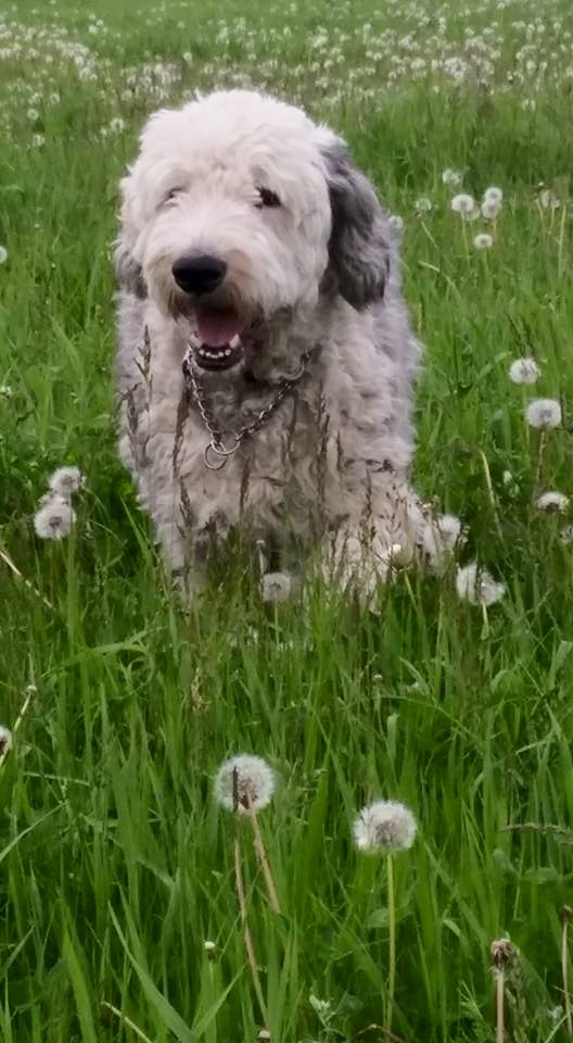 In January 2012, we were trying to cope with the loss of our two previous OES: Ted had died in May 2011 and Willy had been gone for 24 hours. We always planned that they would be our final OES, because we are getting older, our bodies are breaking down, and OES are large and as they age they can need help being hoisted into the car, etc. We figured we didn't have that in us. However, as we sat, saddened in our silent living room, Thom said quietly, "I contacted Helen. She has a litter due in March."