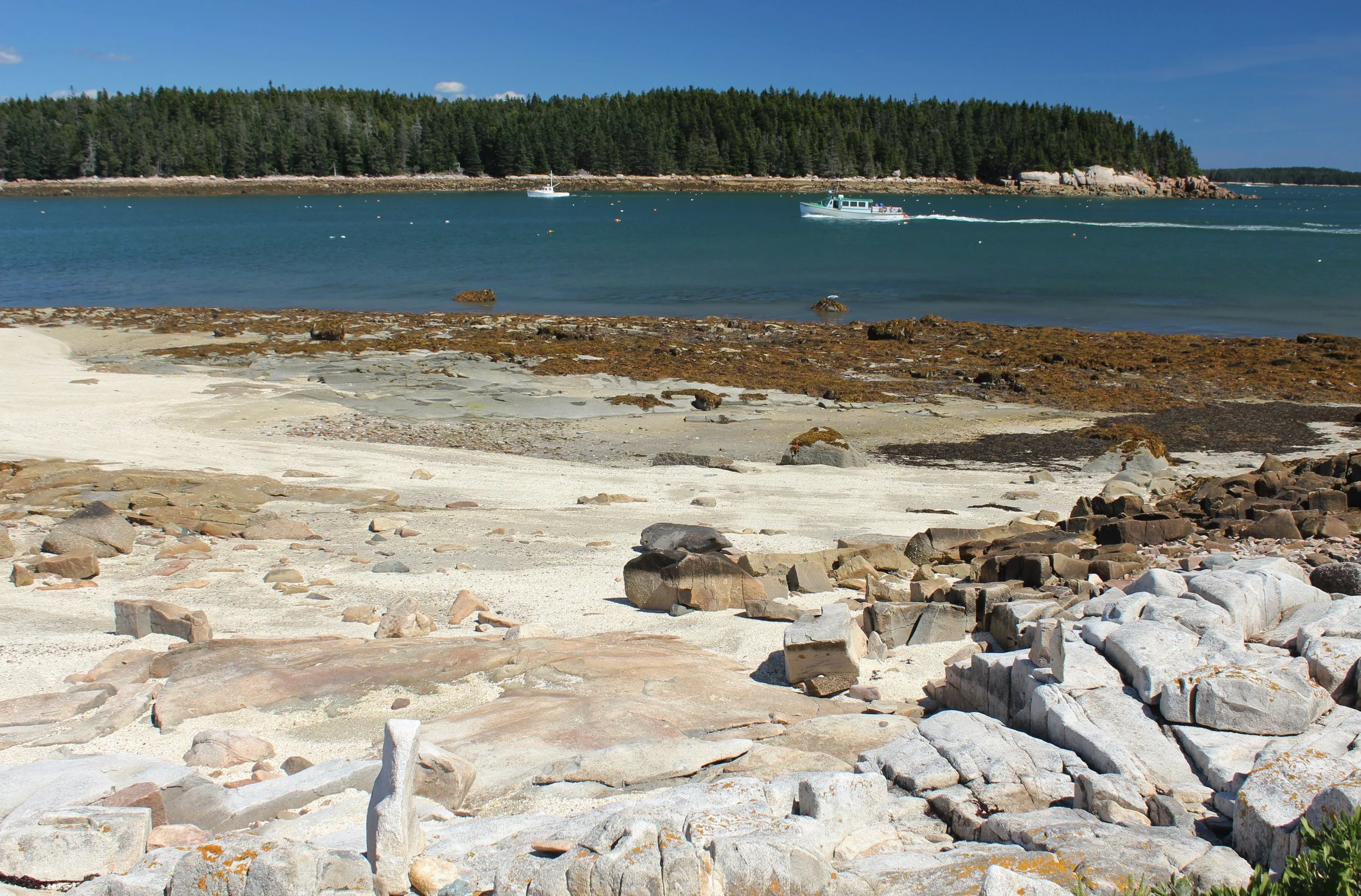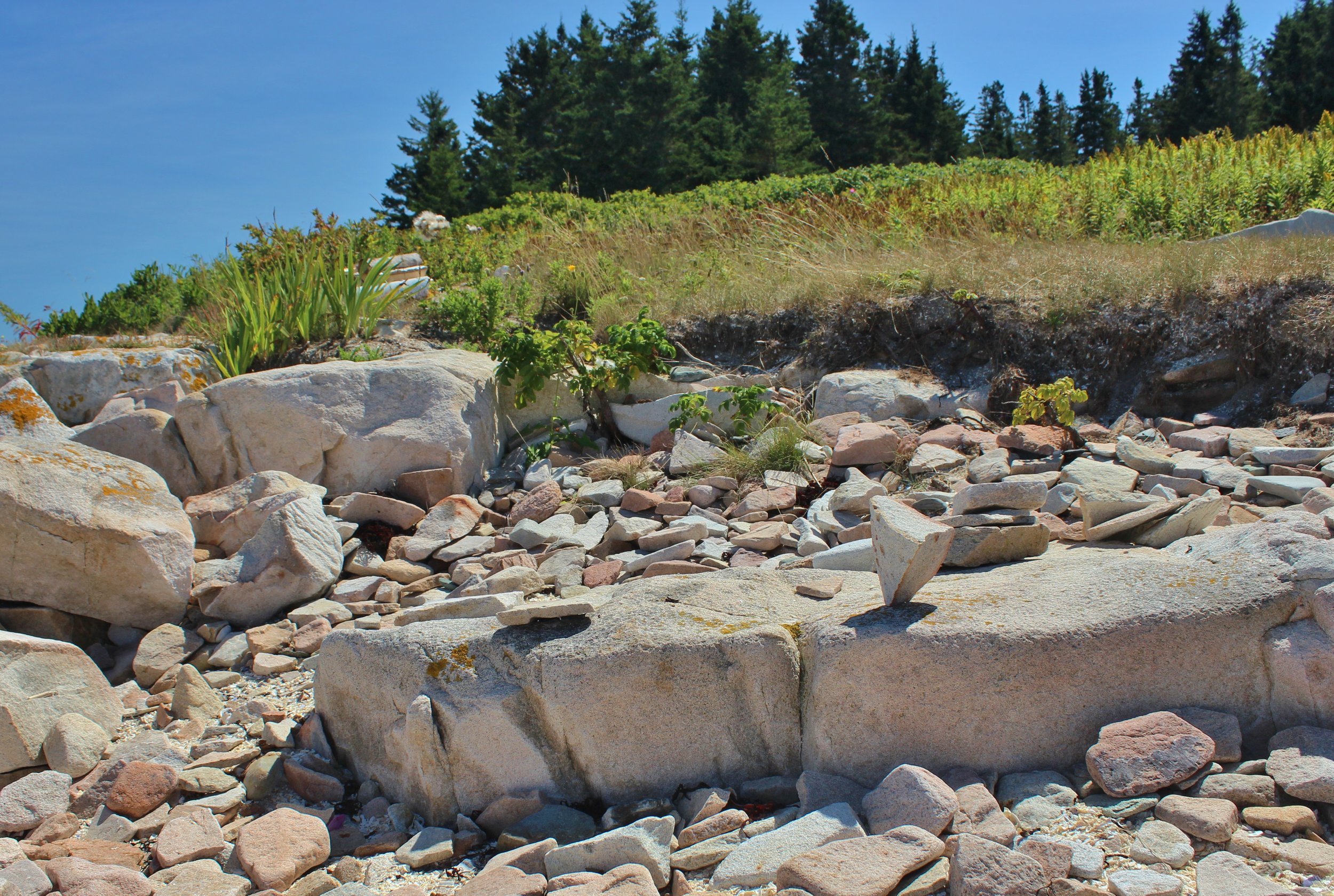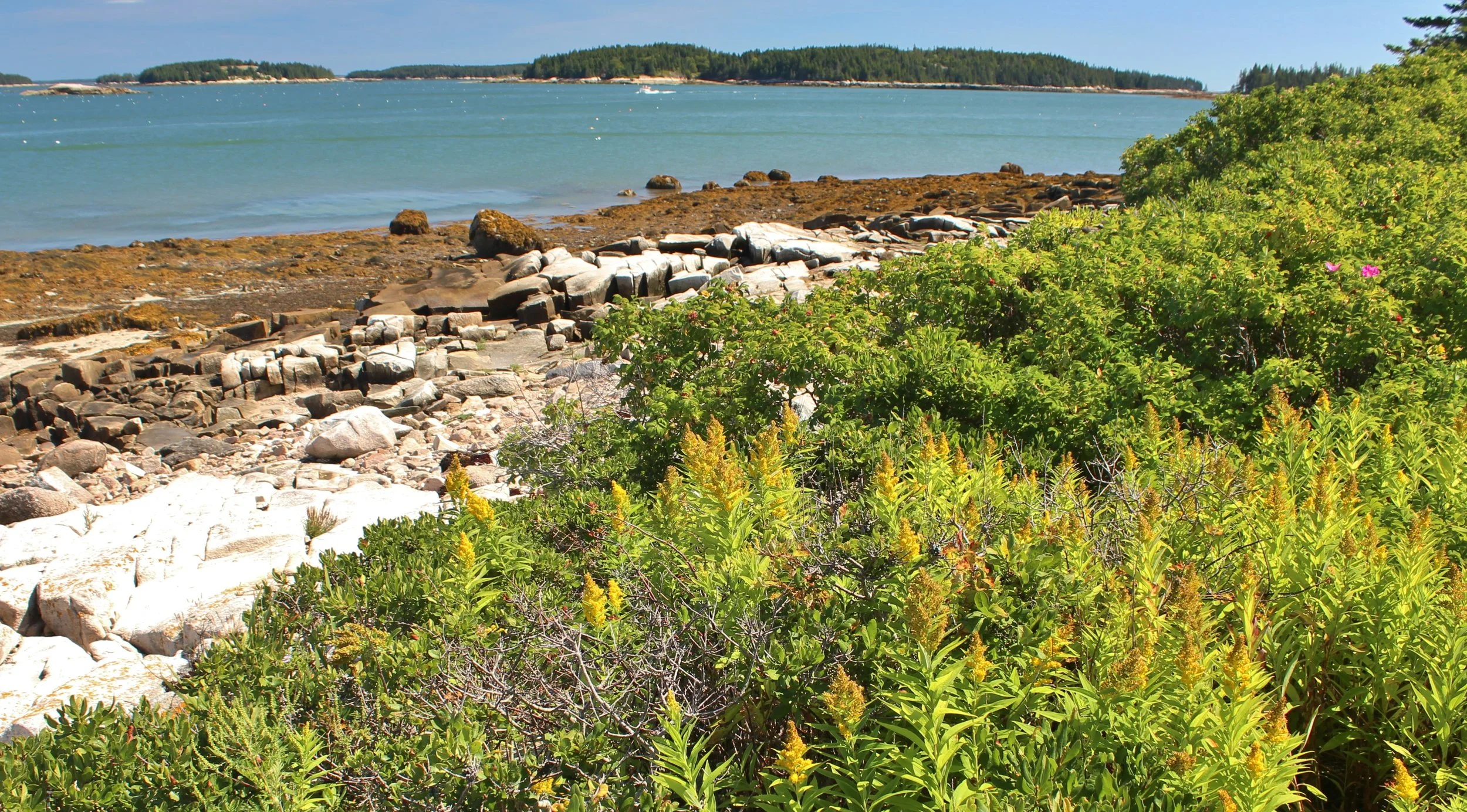 The sea was so calm. We were able to cover much more ground and circle islands that usually have spots that can be a bit treacherous with some wind and waves. With every soft paddle-stroke, my body relaxed. The briny air and the smell of the rosa rugosa growing on the edges between spruce and pine trees and the granite rocks was intoxicating. I kept inhaling deeply, trying to lock in the memory of it.